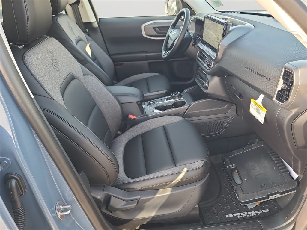 Black Appearance Package (Carbon Black Grille w/Black BRONCO Lettering, Cargo Mat, Front & Rear Floor Liners w/o Carpet Mats, Front Driver/Passenger Seat Back Map Pockets, Liftgate w/Black BRONCO SPORT Lettering, Painted Shadow Black Roof, Premium Trimmed Htd Fr Sport Contour Bucket Seats, and Wheels: 17 Matte Black-Painted Aluminum), Convenience Package (Heated 8-Way Power Driver's Seat, LED Fog Lamps, Premium Wrapped Steering Wheel, and Universal Garage Door Opener (UGDO)), Equipment Group 200A, 4-Wheel Disc Brakes, 6 Speakers, ABS brakes, Air Conditioning, Alloy wheels, AM/FM radio: SiriusXM, AM/FM Stereo, Auto High-beam Headlights, Automatic temperature control, Brake assist, Cloth w/Easy-to-Clean Front Bucket Seats, Compass, Delay-off headlights, Driver door bin, Driver vanity mirror, Dual front impact airbags, Dual front side impact airbags, Electronic Stability Control, Emergency communication system: SYNC 4 911 Assist, Four wheel independent suspension, Front anti-roll bar, Front Bucket Seats, Front Center Armrest, Front License Plate Bracket, Front reading lights, Fully automatic headlights, Heated door mirrors, Illuminated entry, Knee airbag, Low tire pressure warning, Occupant sensing airbag, Outside temperature display, Overhead airbag, Overhead console, Panic alarm, Passenger door bin, Passenger vanity mirror, Power door mirrors, Power Moonroof, Power steering, Power windows, Radio data system, Rear anti-roll bar, Rear Parking Sensors, Rear reading lights, Rear seat center armrest, Rear window defroster, Rear window wiper, Remote keyless entry, Security system, SiriusXM, Speed control, Speed-sensing steering, Speed-Sensitive Wipers, Split folding rear seat, Steering wheel mounted audio controls, SYNC 4 w/Enhanced Voice Recognition, Tachometer, Telescoping steering wheel, Tilt steering wheel, Traction control, Trip computer, Variably intermittent wipers, and Wheels: 17 Carbonized Gray-Painted Aluminum.
