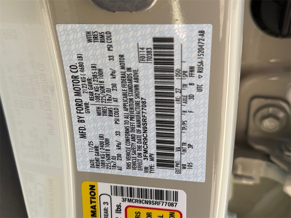 Equipment Group 300A, Outer Banks Tech Package+ (B&O Sound System by Bang & Olufsen, Connected Navigation, and HD Radio), 360-Degree Camera w/Trail & Split View, 4-Wheel Disc Brakes, 6 Speakers, ABS brakes, Air Conditioning, Alloy wheels, AM/FM radio: SiriusXM, AM/FM Stereo, Auto High-beam Headlights, Auto-dimming Rear-View mirror, Automatic temperature control, Brake assist, Compass, Delay-off headlights, Driver door bin, Driver vanity mirror, Dual front impact airbags, Dual front side impact airbags, Electronic Stability Control, Emergency communication system: SYNC 4 911 Assist, Four wheel independent suspension, Front anti-roll bar, Front Bucket Seats, Front Center Armrest, Front Driver/Passenger Seat Back Map Pockets, Front dual zone A/C, Front fog lights, Front License Plate Bracket, Front Parking Sensors, Front reading lights, Fully automatic headlights, Garage door transmitter, Heated door mirrors, Heated front seats, Heated steering wheel, Illuminated entry, Knee airbag, Low tire pressure warning, Memory seat, Occupant sensing airbag, Outside temperature display, Overhead airbag, Overhead console, Panic alarm, Passenger door bin, Passenger vanity mirror, Power door mirrors, Power driver seat, Power Moonroof, Power passenger seat, Power steering, Power windows, Premium Trimmed Front Bucket Seats w/Ebony/Roast, Radio data system, Rain sensing wipers, Rear anti-roll bar, Rear Parking Sensors, Rear reading lights, Rear seat center armrest, Rear window defroster, Rear window wiper, Remote keyless entry, Reverse Brake Assist, Security system, SiriusXM, Speed control, Speed-sensing steering, Speed-Sensitive Wipers, Split folding rear seat, Steering wheel mounted audio controls, SYNC 4 w/Enhanced Voice Recognition, Tachometer, Telescoping steering wheel, Tilt steering wheel, Traction control, Trip computer, Variably intermittent wipers, and Wheels: 18 Ebony Black-Painted Aluminum.
