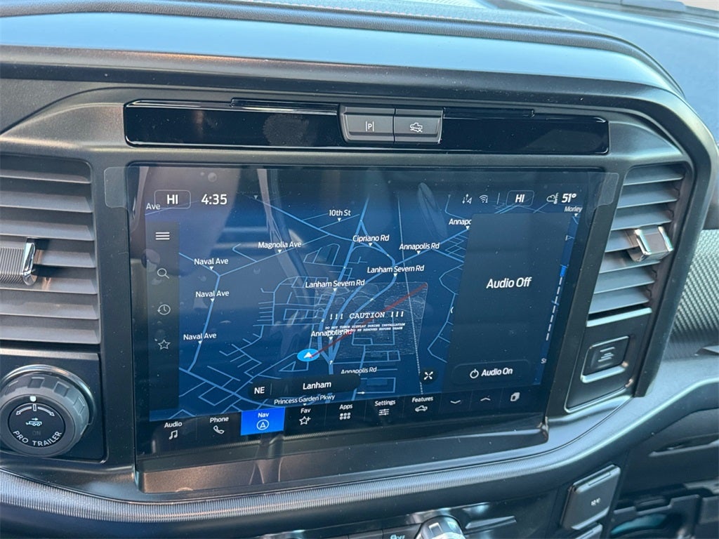 4WD. 4WD, 14 Speakers, 17 Cast Aluminum Wheels, 4-Wheel Disc Brakes, ABS brakes, Adjustable pedals, Air Conditioning, Alloy wheels, AM/FM radio: SiriusXM with 360L, Auto High-beam Headlights, Auto tilt-away steering wheel, Auto-dimming door mirrors, Auto-dimming Rear-View mirror, Automatic temperature control, Brake assist, Bumpers: body-color, Compass, Delay-off headlights, Driver door bin, Driver vanity mirror, Dual front impact airbags, Dual front side impact airbags, Electronic Locking w/4.10 Axle Ratio, Electronic Stability Control, Emergency communication system: SYNC 4 911 Assist, Front anti-roll bar, Front Bucket Seats, Front Center Armrest, Front dual zone A/C, Front fog lights, Front License Plate Bracket, Front reading lights, Front wheel independent suspension, Fully automatic headlights, Garage door transmitter, Heads-Up Display, Heated door mirrors, Heated front seats, Heated rear seats, Heated steering wheel, Illuminated entry, Internet access capable: FordPass Connect 5G, Lane Departure Warning System, Leather steering wheel, Leather Trimmed Seats, Low tire pressure warning, Memory seat, Navigation system: Connected Navigation, Occupant sensing airbag, Outside temperature display, Overhead airbag, Overhead console, Panic alarm, Passenger door bin, Passenger vanity mirror, Pedal memory, Power door mirrors, Power driver seat, Power passenger seat, Power steering, Power windows, Radio data system, Radio: B&O Unleashed Sound System by Bang & Olufsen, Rain sensing wipers, Rear reading lights, Rear step bumper, Rear window defroster, Remote keyless entry, Security system, Speed control, Speed-sensing steering, Split folding rear seat, Steering wheel memory, Steering wheel mounted audio controls, SYNC 4 w/Enhanced Voice Recognition, Tachometer, Telescoping steering wheel, Tilt steering wheel, Traction control, Trip computer, Turn signal indicator mirrors, Twin Panel Moonroof, Variably intermittent wipers, and Ventilated front seats.