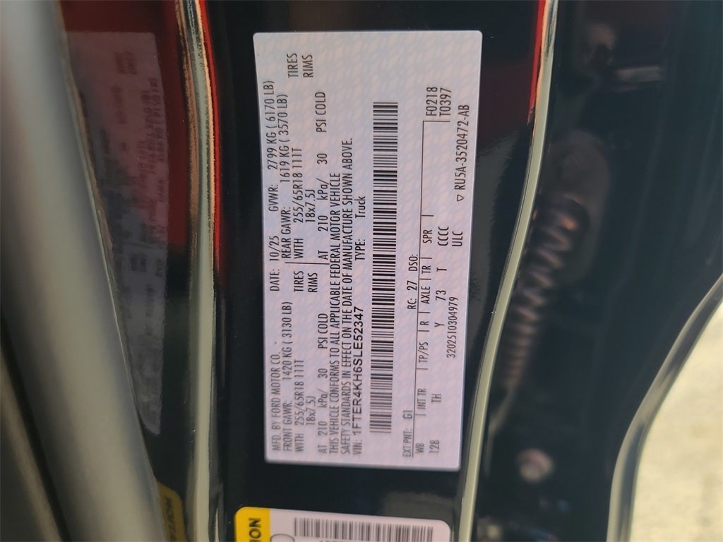4WD. Advanced Towing Package (Pro Trailer Backup Assist, Rear Parking Sensors w/Trailer Guidance, and Trailer Brake Controller), Black Appearance Package (Black Center Bar & Surround Grille, Black Rear Bumper, Body-Color Painted Front Fascia, Front & Rear Black Ford Ovals, Painted Body-Color Wheel Lip Molding, Unique Carpet Mats, and Wheels: 18 Black Painted), Convenience Package (120V/400W In-Cab & In-Bed Power Outlets and Wireless Charging Pad), Equipment Group 500A Standard, FX4 Off-Road Package (FX4 Off-Road Box Decal, FX4 Selectable Drive Modes, Off-Road Screen in Center Stack, Off-Road Tuned Shocks, and Trail Control), Sport Appearance Package (Gray Painted Center Bar & Grille Surround, Gray Painted Front Fascia & Rear Bumper, and Sport Box Decal), Trailer Tow Package (Class IV Trailer Hitch Receiver), 4WD, 10 Speakers, 4-Wheel Disc Brakes, ABS brakes, Air Conditioning, Alloy wheels, AM/FM radio: SiriusXM, Auto High-beam Headlights, Auto-dimming Rear-View mirror, Automatic temperature control, Black Running Boards, Brake assist, Compass, Delay-off headlights, Driver door bin, Driver vanity mirror, Dual front impact airbags, Dual front side impact airbags, Electronic Stability Control, Emergency communication system: SYNC 4 911 Assist, Front anti-roll bar, Front Bucket Seats, Front Center Armrest, Front dual zone A/C, Front fog lights, Front License Plate Bracket, Front reading lights, Front wheel independent suspension, Fully automatic headlights, Garage door transmitter, Heated door mirrors, Heated front seats, Heated steering wheel, Illuminated entry, Integrated Box Side Step, Leather Shift Knob, Leather steering wheel, Leather-Trimmed Front Heated Bucket Seats, Low tire pressure warning, Memory seat, Navigation system: Connected Navigation, Occupant sensing airbag, Outside temperature display, Overhead airbag, Overhead console, Panic alarm, Passenger door bin, Passenger vanity mirror, Power door mirrors, Power driver seat, Power passenger seat, Power steering, Power windows, Radio: B&O Sound System by Bang & Olufsen, Rain sensing wipers, Rear reading lights, Rear seat center armrest, Rear step bumper, Rear window defroster, Remote keyless entry, Security system, SiriusXM Satellite Radio, Speed control, Speed-sensing steering, Steering wheel mounted audio controls, SYNC 4A w/Connected Navigation, Telescoping steering wheel, Tilt steering wheel, Tough Bed Spray-In Bedliner, Traction control, Tray Style Floor Liner w/Carpet Floor Mats, Trip computer, Turn signal indicator mirrors, Variably intermittent wipers, Voltmeter, and Wheels: 18 Machined Aluminum w/Dark Pockets. Price includes: $2000 - Bonus Customer Cash. Exp. 03/31/2026 $500 - 2026 Military Recognition Exclusive Cash Reward. Exp. 01/04/2027