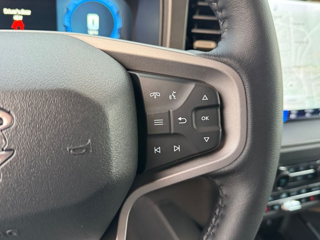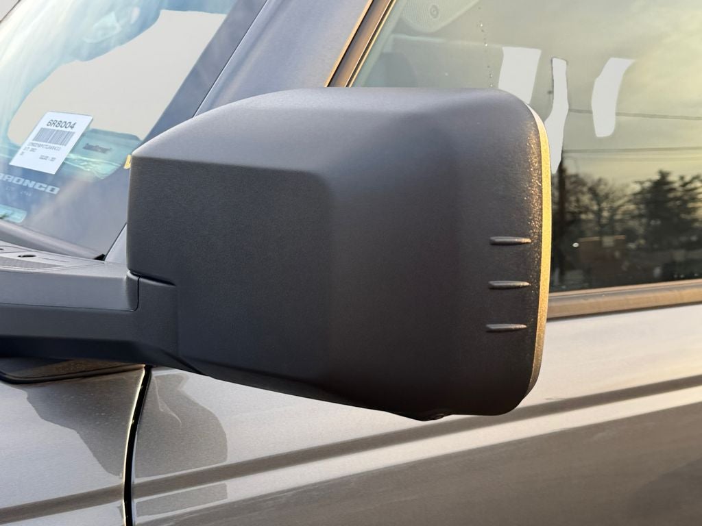 Equipment Group 334A Lux Package (2-Door Intelligent Access with Lock/Unlock, 360-Degree Camera, Adaptive Cruise Control, Ambient Footwell Lighting, Connected Navigation, Driver and Front Passenger Illuminated Sliding Visor Vanity Mirrors, Dual Smart Charging USB Ports, Dual-Zone Electronic Automatic Temperature Control, Evasive Steering Assist, Front Parking Sensors, Front Row Heated Seats, Heated Steering Wheel, Information on Demand Panel, Marine Grade Vinyl Heated Bucket Seats, Pro Power Onboard - 400W, Rear Parking Sensors, Sideview Mirrors, and Wheels: 17 Carbonized Gray-Painted Aluminum), Ford Connectivity Package (1-Year Included), 4-Wheel Disc Brakes, 4.7 Axle Ratio, 7 Speakers, ABS brakes, Air Conditioning, Alloy wheels, AM/FM radio: SiriusXM with 360L, AM/FM Stereo, Auto High-Beam Headlamps, Auto High-beam Headlights, Auto-dimming Rear-View mirror, BLIS Blind Spot Information System, Brake assist, Carbonized Gray Molded-in-Color Hard Top, Compass, Delay-off headlights, Driver door bin, Driver vanity mirror, Dual front impact airbags, Dual front side impact airbags, Electronic Stability Control, Emergency communication system: 911 Assist, Exterior Parking Camera Rear, Front and Rear Floor Liners Without Carpet Floor Mats, Front anti-roll bar, Front Bucket Seats, Front Center Armrest, Front fog lights, Front License Plate Bracket, Front reading lights, Front wheel independent suspension, Fully automatic headlights, Hard Top Sound Deadening Headliner, Heated door mirrors, Heated front seats, Illuminated entry, Integrated roll-over protection, Lane-Keeping System, Leather Shift Knob, Leather-Trimmed/Vinyl Bucket Seats, Low tire pressure warning, Occupant sensing airbag, Outside temperature display, Overhead airbag, Overhead console, Panic alarm, Passenger door bin, Passenger vanity mirror, Power door mirrors, Power steering, Power windows, Pre-Collision Assist with Automatic Emergency Braking, Radio data system, Rear-View Camera, Rear-Window Defroster and Washer, Remote keyless entry, Remote Start System, Security system, SiriusXM with 360L, Speed control, Split folding rear seat, Steering wheel mounted audio controls, SYNC 4, Tachometer, Telescoping steering wheel, Tilt steering wheel, Traction control, Trip computer, Variably intermittent wipers, and Voltmeter.