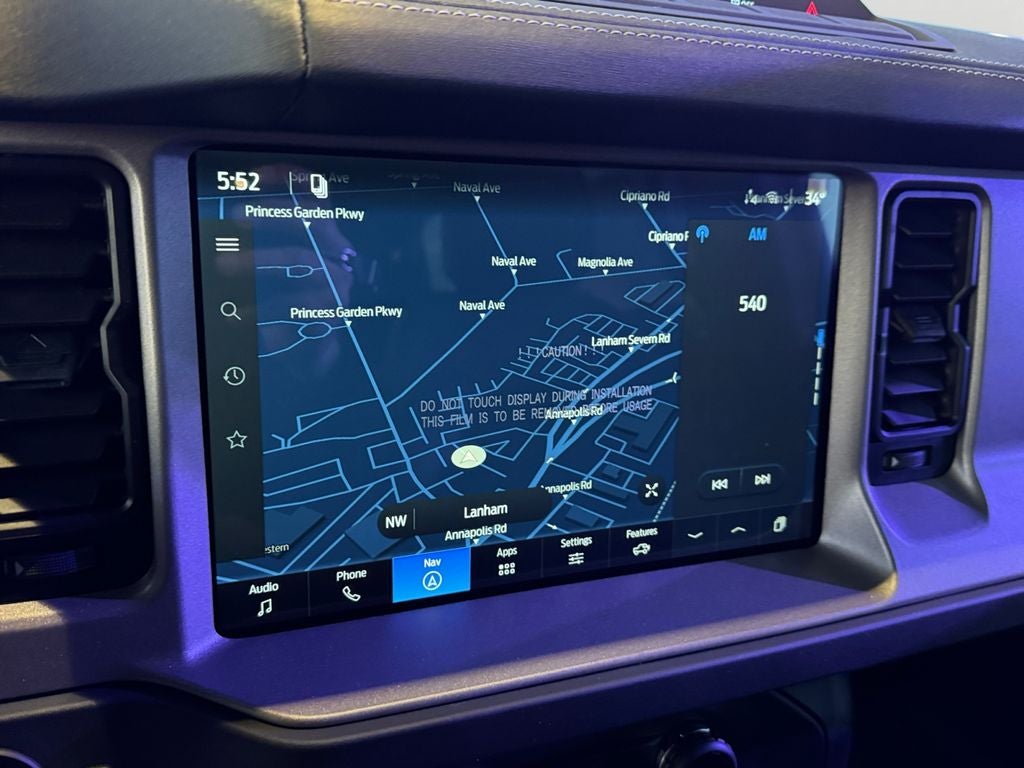 Equipment Group 312A Mid Package (18 Bright Machined Aluminum Wheels, AM/FM Stereo, Connected Navigation, Heated Leather-Trimmed/Vinyl Bucket Seats, SiriusXM with 360L, and SYNC 4), Ford Connectivity Package (1-Year Included), Sasquatch Package (High Clearance Fender Flares, High Clearance Suspension, Position-Sensitive Bilstein Shock Absorbers, and Wheels: 17 Matte Black Alloy), 4-Wheel Disc Brakes, 7 Speakers, ABS brakes, Air Conditioning, Alloy wheels, AM/FM radio: SiriusXM with 360L, Auto High-beam Headlights, Auto-dimming Rear-View mirror, Automatic temperature control, Brake assist, Carbonized Gray Molded-in-Color Hard Top, Compass, Delay-off headlights, Driver door bin, Driver vanity mirror, Dual front impact airbags, Dual front side impact airbags, Electronic Stability Control, Emergency communication system: 911 Assist, Exterior Parking Camera Rear, Front anti-roll bar, Front Bucket Seats, Front Center Armrest, Front dual zone A/C, Front fog lights, Front License Plate Bracket, Front reading lights, Front wheel independent suspension, Fully automatic headlights, Hard Top Sound Deadening Headliner, Heated door mirrors, Heated front seats, Heated steering wheel, Illuminated entry, Integrated roll-over protection, Leather Shift Knob, Low tire pressure warning, Navigation system: Connected Navigation, Occupant sensing airbag, Outside temperature display, Overhead airbag, Overhead console, Panic alarm, Passenger door bin, Passenger vanity mirror, Power door mirrors, Power driver seat, Power passenger seat, Power steering, Power windows, Radio data system, Rear seat center armrest, Rear-Window Defroster and Washer, Remote keyless entry, Security system, Speed control, Split folding rear seat, Steering wheel mounted audio controls, Tachometer, Telescoping steering wheel, Tilt steering wheel, Traction control, Trip computer, Variably intermittent wipers, Voltmeter, and Wheels: 17 Black High Gloss-Painted Aluminum.