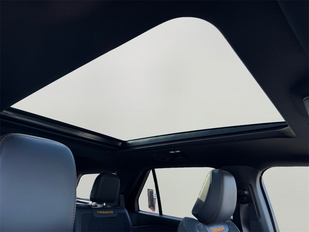 4WD. Equipment Group 800A Standard Package (Heated/Ventilated Miko Suede Captain's Chairs, Radio: B&O Sound System by Bang and Olufsen, and Wheels: 18 High Gloss Black-Painted Aluminum), Ford Connectivity Package (one-Time Purchase - 7 Years), Tremor Ultimate Package (3rd Row PowerFold Seats, Ambient Lighting, Memory Driver's Seat, Multicontour Seats with Front Active Motion, Panoramic Fixed Glass Roof with Power Shade, Power-Folding with Autofold Side Mirrors, Radio: B&O Sound System by Bang & Olufsen, and Rain-Sensing Wipers (front Only)), 4WD, 10 Speakers, 3rd row seats: bench, 4-Wheel Disc Brakes, ABS brakes, Air Conditioning, Alloy wheels, AM/FM radio: SiriusXM with 360L, Apple CarPlay/Android Auto, Auto High-beam Headlights, Automatic temperature control, BlueCruise (equipment + 1-Year + 90-Day Plan), BlueCruise Hardware, Brake assist, Bumpers: body-color, Compass, Delay-off headlights, Driver door bin, Driver vanity mirror, Dual front impact airbags, Dual front side impact airbags, Electronic Stability Control, Emergency communication system: 911 Assist, Exterior Parking Camera Rear, Four wheel independent suspension, Front anti-roll bar, Front Bucket Seats, Front Center Armrest, Front dual zone A/C, Front fog lights, Front License Plate Bracket, Front reading lights, Fully automatic headlights, Garage door transmitter, Heated door mirrors, Heated front seats, Heated rear seats, Heated steering wheel, Illuminated entry, Knee airbag, Leather steering wheel, Low tire pressure warning, Navigation System, Occupant sensing airbag, Outside temperature display, Overhead airbag, Overhead console, Panic alarm, Passenger door bin, Passenger vanity mirror, Power door mirrors, Power driver seat, Power Liftgate, Power passenger seat, Power steering, Power windows, Rear air conditioning, Rear anti-roll bar, Rear reading lights, Rear window defroster, Rear window wiper, Remote keyless entry, SecuriCode Keyless Entry Keypad, Security system, Speed control, Speed-sensing steering, Speed-Sensitive Wipers, Split folding rear seat, Spoiler, Sport steering wheel, Steering wheel mounted audio controls, Tachometer, Telescoping steering wheel, Tilt steering wheel, Traction control, Trip computer, Variably intermittent wipers, and Ventilated front seats.