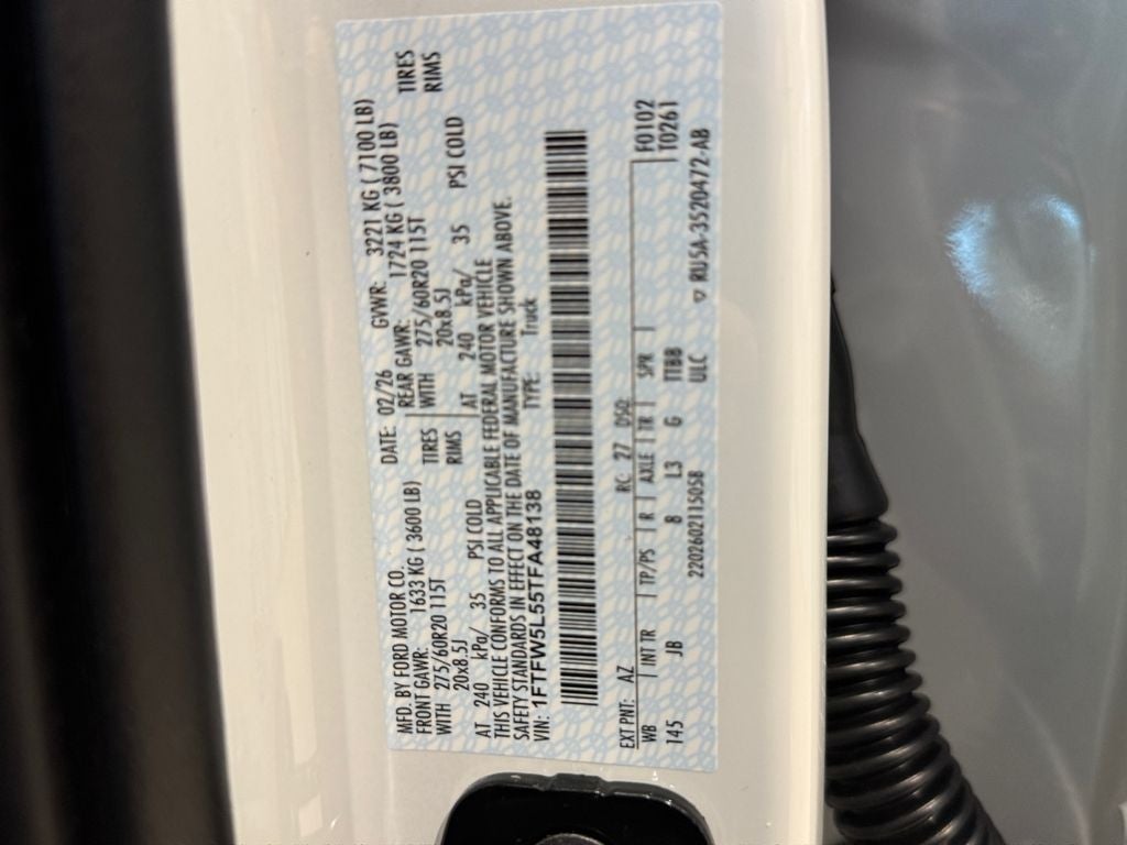 4WD. Bed Utility Package (4 Pickup Box Tie-Down Plates, Bed Storage Boxes, LED Box Lighting, and Tailgate Step with Work Surface), Equipment Group 502A High (2nd Row Heated Seats, Ambient Lighting - Ice Blue Color Only, Head-Up Display, Illuminated Driver and Passenger Visors, Power-Adjustable Pedals with Memory, Power-Sliding Rear Window, Radio: B&O Unleashed Sound System by Bang & Olufsen, and Wheels: 20 Chrome-Like PVD), Ford Connectivity Package (1-Year Included), FX4 Off-Road Package (4x4 FX4 Off-Road Bodyside Decal, Hill Descent Control, Monotube Rear Shocks, Off-Road Tuned Front Shock Absorbers, and Tray Style Floor Liner Without Carpet Mats), Internet access capable: 5G Modem - Ford Connectivity Package, Mobile Office Package (Console Worksurface, Partitioned Lockable Rear Storage, and Wireless Charging), 4WD, 4-Wheel Disc Brakes, 8 Speakers, ABS brakes, Air Conditioning, Alloy wheels, AM/FM radio: SiriusXM with 360L, Auto High-beam Headlights, Auto-dimming door mirrors, Auto-dimming Rear-View mirror, Automatic temperature control, Brake assist, Bumpers: chrome, Chrome wheels, Compass, Delay-off headlights, Driver door bin, Driver vanity mirror, Dual front impact airbags, Dual front side impact airbags, Electronic Stability Control, Emergency communication system: SYNC 4 911 Assist, Front anti-roll bar, Front Bucket Seats, Front Center Armrest, Front dual zone A/C, Front fog lights, Front License Plate Bracket, Front reading lights, Front wheel independent suspension, Fully automatic headlights, Garage door transmitter, Heated door mirrors, Heated front seats, Heated steering wheel, Illuminated entry, Low tire pressure warning, Memory seat, Navigation system: Connected Navigation, Occupant sensing airbag, Outside temperature display, Overhead airbag, Overhead console, Panic alarm, Passenger door bin, Passenger vanity mirror, Power door mirrors, Power driver seat, Power passenger seat, Power steering, Power Tailgate, Power windows, Pro Access Tailgate, Radio data system, Radio: B&O Sound System by Bang and Olufsen, Rain sensing wipers, Rear reading lights, Rear seat center armrest, Rear step bumper, Rear window defroster, Remote keyless entry, Retractable Rear Center Step, Security system, SiriusXM with 360L (3-Year Plan), Speed control, Split folding rear seat, Steering wheel mounted audio controls, SYNC 4 with Enhanced Voice Recognition, Tachometer, Telescoping steering wheel, Tilt steering wheel, Tough Bed Spray-in Bedliner, Traction control, Trip computer, Turn signal indicator mirrors, Twin Panel Moonroof, Variably intermittent wipers, Ventilated front seats, and Wheels: 18 Chrome-Like PVD. Price includes: $2500 - Retail Customer Cash. Exp. 04/30/2026