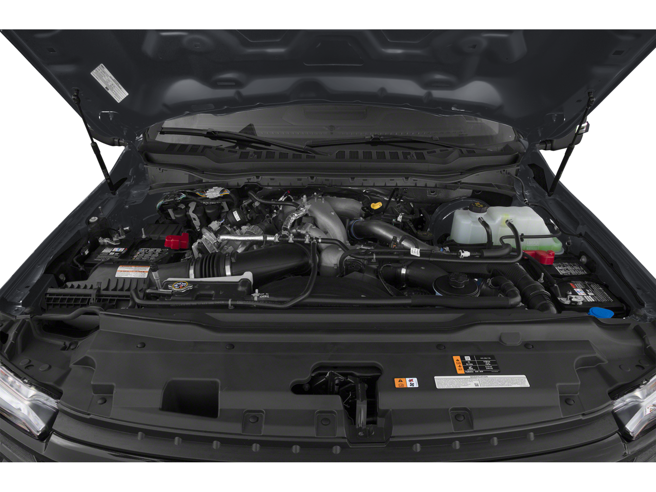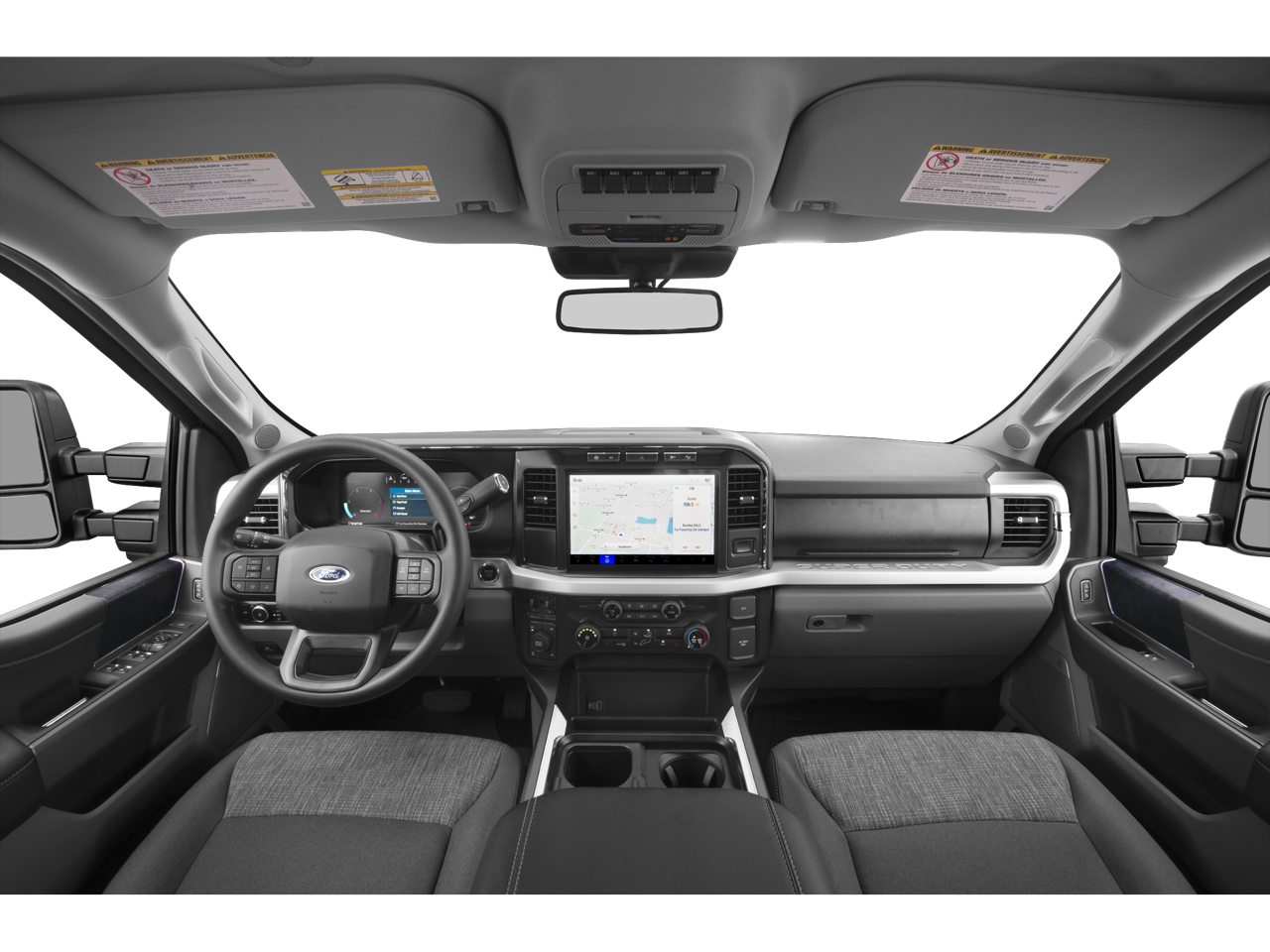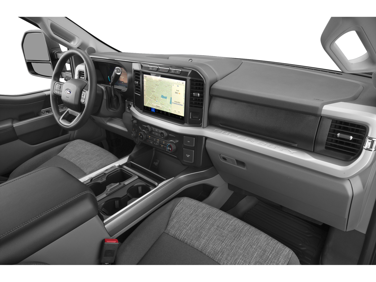 4WD. 5th Wheel/Gooseneck Hitch Prep Package, Ford Connectivity Package (1-Year Included), GVWR: 10,000 Lb Payload Package, Internet access capable: 5G Modem - Ford Connectivity Package, 4WD, 360-Degree Camera, 4-Wheel Disc Brakes, 6 Speakers, ABS brakes, Air Conditioning, Alloy wheels, AM/FM radio, Auto High-beam Headlights, BLIS with Cross-Traffic Alert, Brake assist, Bumpers: chrome, Cloth 40/20/40 Split Bench Seat, Cloth 40/Console/40 Front Seats, Compass, Delay-off headlights, Driver door bin, Driver vanity mirror, Dual front impact airbags, Dual front side impact airbags, Electronic Stability Control, Emergency communication system: SYNC 4 911 Assist, Exterior Parking Camera Rear, Flow-Through Console, Front anti-roll bar, Front Center Armrest w/Storage, Front fog lights, Front License Plate Bracket, Front reading lights, Fully automatic headlights, Heated door mirrors, Illuminated entry, LED Center High-Mounted Stop Lamp (CHMSL) Camera, LED Roof Clearance Lights, Low tire pressure warning, Outside temperature display, Overhead airbag, Overhead console, Panic alarm, Passenger door bin, Passenger vanity mirror, Power door mirrors, Power driver seat, Power steering, Power windows, Privacy Glass, Radio: AM/FM Stereo with MP3 Player, Rear Parking Sensors, Rear reading lights, Rear step bumper, Remote keyless entry, Security system, Speed control, Split folding rear seat, Steering wheel mounted audio controls, SYNC 4, Tachometer, Telescoping steering wheel, Tilt steering wheel, Tough Bed Spray-in Bedliner, Traction control, Trip computer, Turn signal indicator mirrors, Variably intermittent wipers, and Wheels: 18 Sparkle Silver Painted Cast Aluminum.