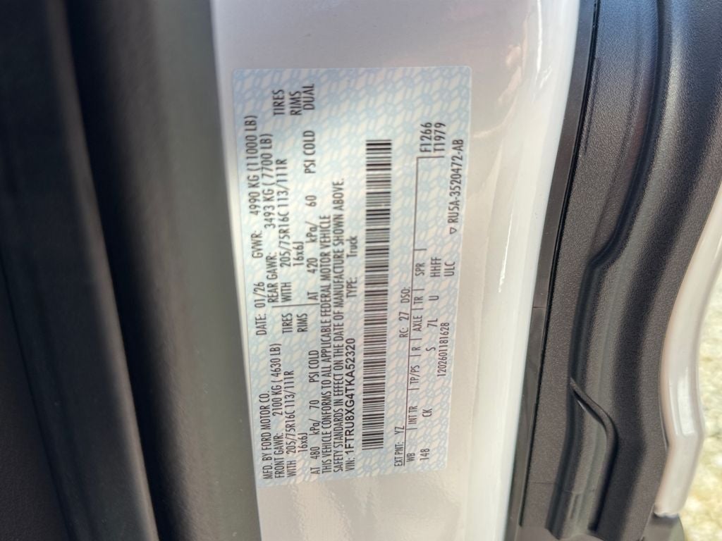 Ford Connectivity Package (1-Year Included), Order Code 101A (3.73 Limited-Slip Axle Ratio, AM/FM Stereo, Dark Palazzo Gray Vinyl Bucket Seats, SYNC 4, Vinyl Front Bucket Seats, and Wheels: 16 Heavy Duty Silver Steel), 4 Speakers, 4-Wheel Disc Brakes, ABS brakes, Air Conditioning, AM/FM radio, Apple CarPlay/Android Auto, Auto High-beam Headlights, Brake assist, Dark Palazzo Gray Cloth Swivel Bucket Seats, Delay-off headlights, Driver door bin, Driver's Seat Mounted Armrest, Dual AGM Batteries (70 Amp-Hr Each), Dual front impact airbags, Dual front side impact airbags, Dual rear wheels, Electronic Stability Control, Emergency communication system: 911 Assist, Exterior Parking Camera Rear, Front anti-roll bar, Front Bucket Seats, Front License Plate Bracket, Front reading lights, Front wheel independent suspension, Fully automatic headlights, Illuminated entry, Low tire pressure warning, Navigation system: Connected Navigation, Occupant sensing airbag, Overhead airbag, Panic alarm, Passenger cancellable airbag, Passenger door bin, Power door mirrors, Power steering, Power windows, Rain sensing wipers, Remote keyless entry, Speed control, Steering wheel mounted audio controls, Tachometer, Telescoping steering wheel, Tilt steering wheel, Tow/Haul Mode with Trailer Wiring Provisions, Traction control, and Variably intermittent wipers. Price includes: $3000 - Retail Customer Cash. Exp. 04/30/2026