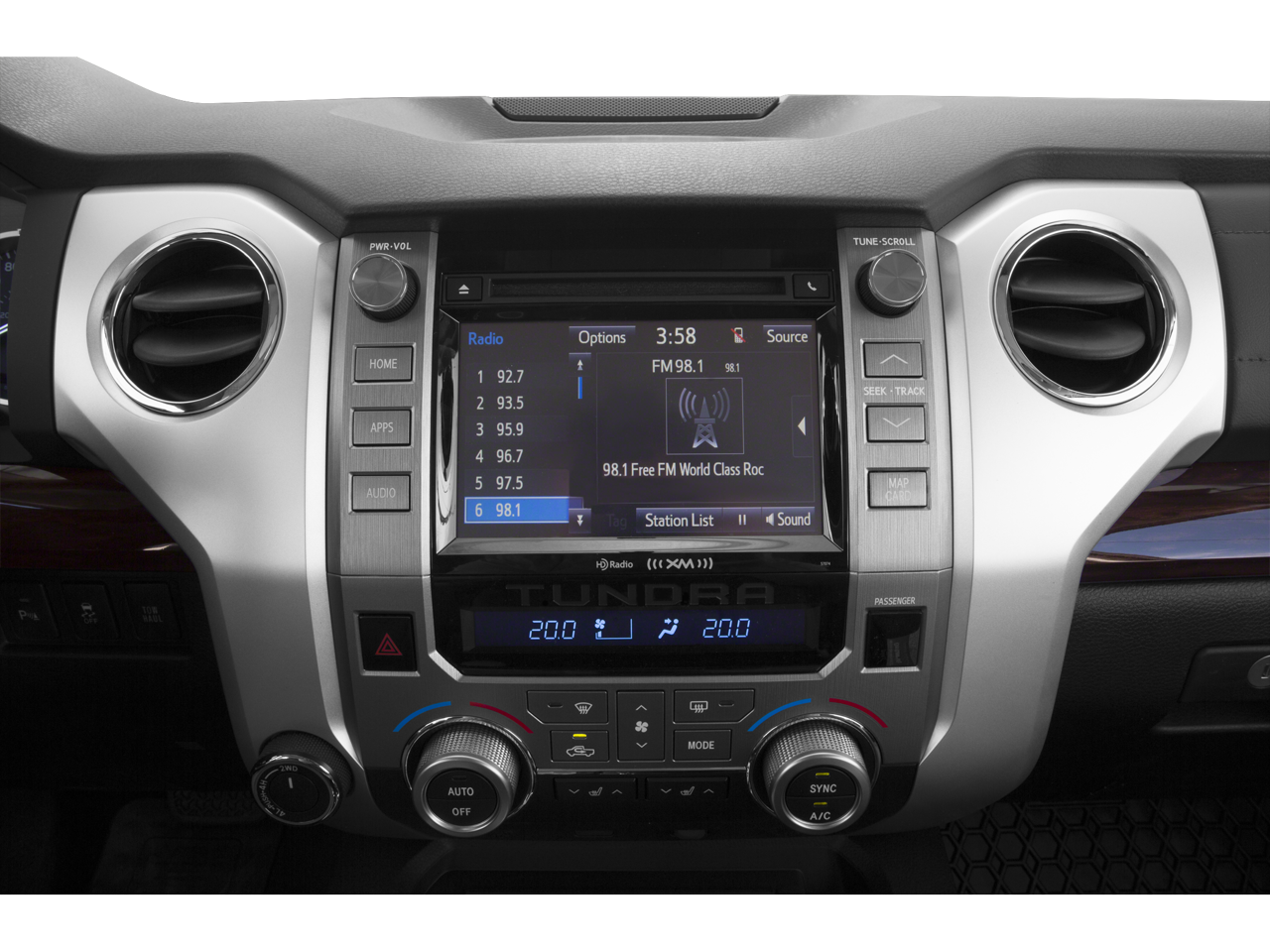 - Radio: Entune AM/FM/HD w/CD Player -inc: navigation system, MP3/WMA playback capability, high-resolution 7" touch-screen display, auxiliary audio jack, USB 2.0 port, iPod connectivity and control, iTunes Tagging, traffic and weather, Bluetooth hands-free phone capability, phone book access, voice recognition and music streaming, Entune App Suite, includes Bing, iHeartRadio, MovieTickets.com, OpenTable, Pandora, Yelp and Facebook Places; real-time info including traffic, weather, fuel prices, sports and stocks, SIRIUSXM Satellite Radio, 90-day free trial